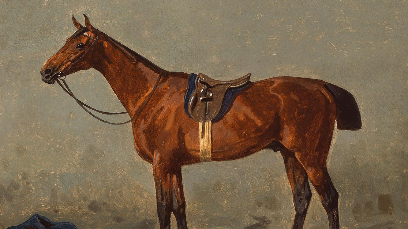 Beautiful 1800's Horse Portrait features a beautiful bay horse with a rich balance of warm and red tones. This piece presents beautifully in a dark modern or gold frame as well as classic old-world style gold ornate frames.