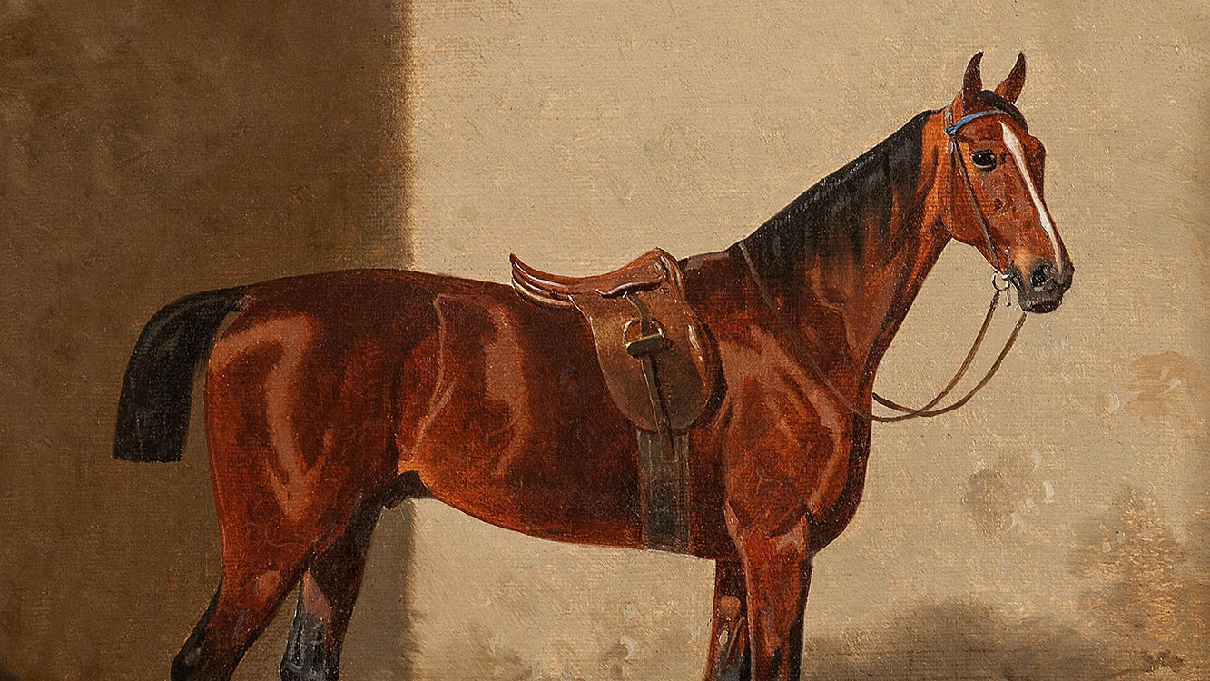 Beautiful 1800's Horse Portrait features a beautiful bay horse with a rich balance of warm and red tones. This piece presents beautifully in a dark modern or gold frame as well as classic old-world style gold ornate frames.
