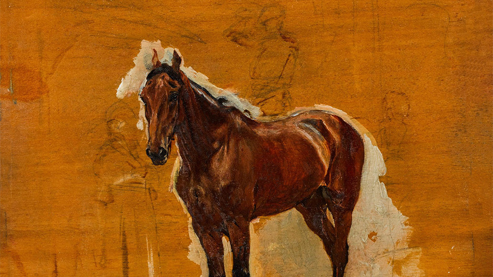 Beautiful portrait of a bay horse. This portrait features warm orange tones with unique detailing of the artist's sketches. Minimal restoration to maintain the raw appeal. This piece presents beautifully in a dark modern or bronze frame as well as classic old-world style gold ornate frames.