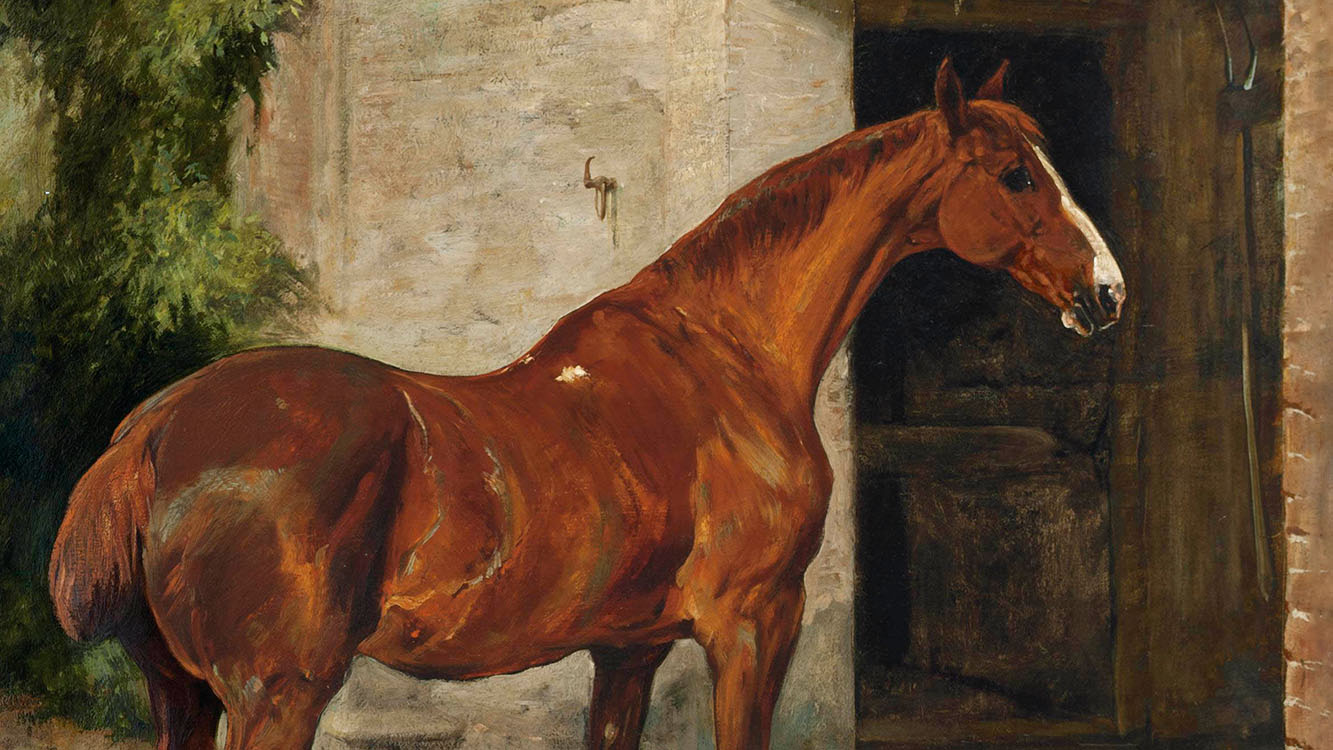 This print is of a beautiful painting by John Emms from the late 1800s. It features a chestnut hunter waiting in the archway of the stables, along with friends. With rich golds and browns and amazing detail, this piece frames beautifully in a medium wood frame as well as classic old-world style gold ornate frames.